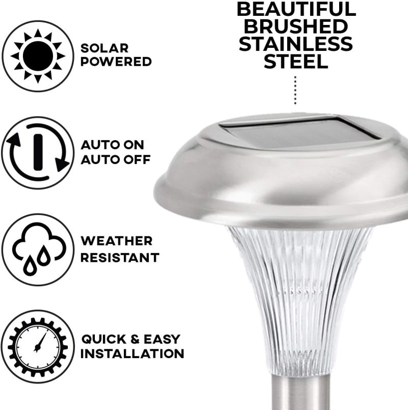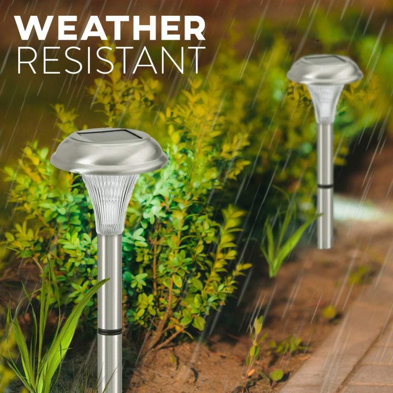 Kućište je izrađeno od brušenog nerđajućeg čelika, a matirane leće daju sofisticiran izgled koji se uklapa u svaki eksterijer. Lampice su otporne na vremenske uslove poput kiše i snijega, što ih čini idealnim za korištenje tokom cijele godine.