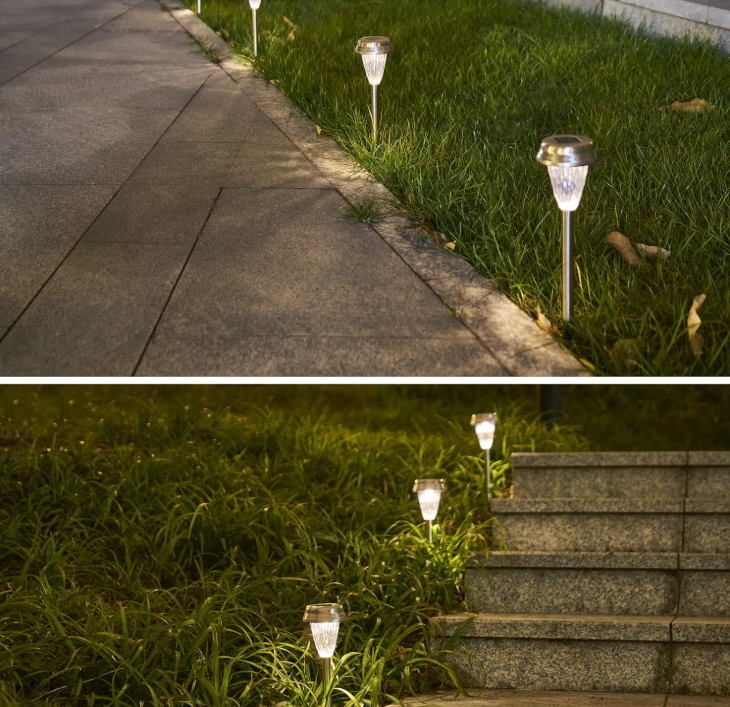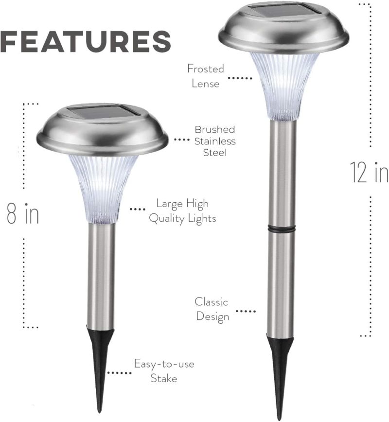 Montaža je izuzetno jednostavna — samo se zabodu u zemlju pomoću oštrog postolja, bez potrebe za električnim instalacijama ili alatima. Klasičan dizajn i visok kvalitet svjetla pružaju prijatnu atmosferu i bolju vidljivost oko staza, terasa, ulaza ili vrta.